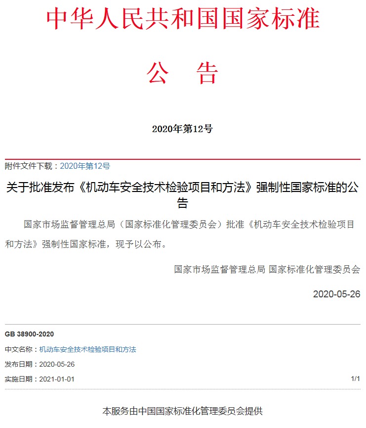 关于批准发布《机动车安全技术检验项目和方法》强制性国家标准的公告